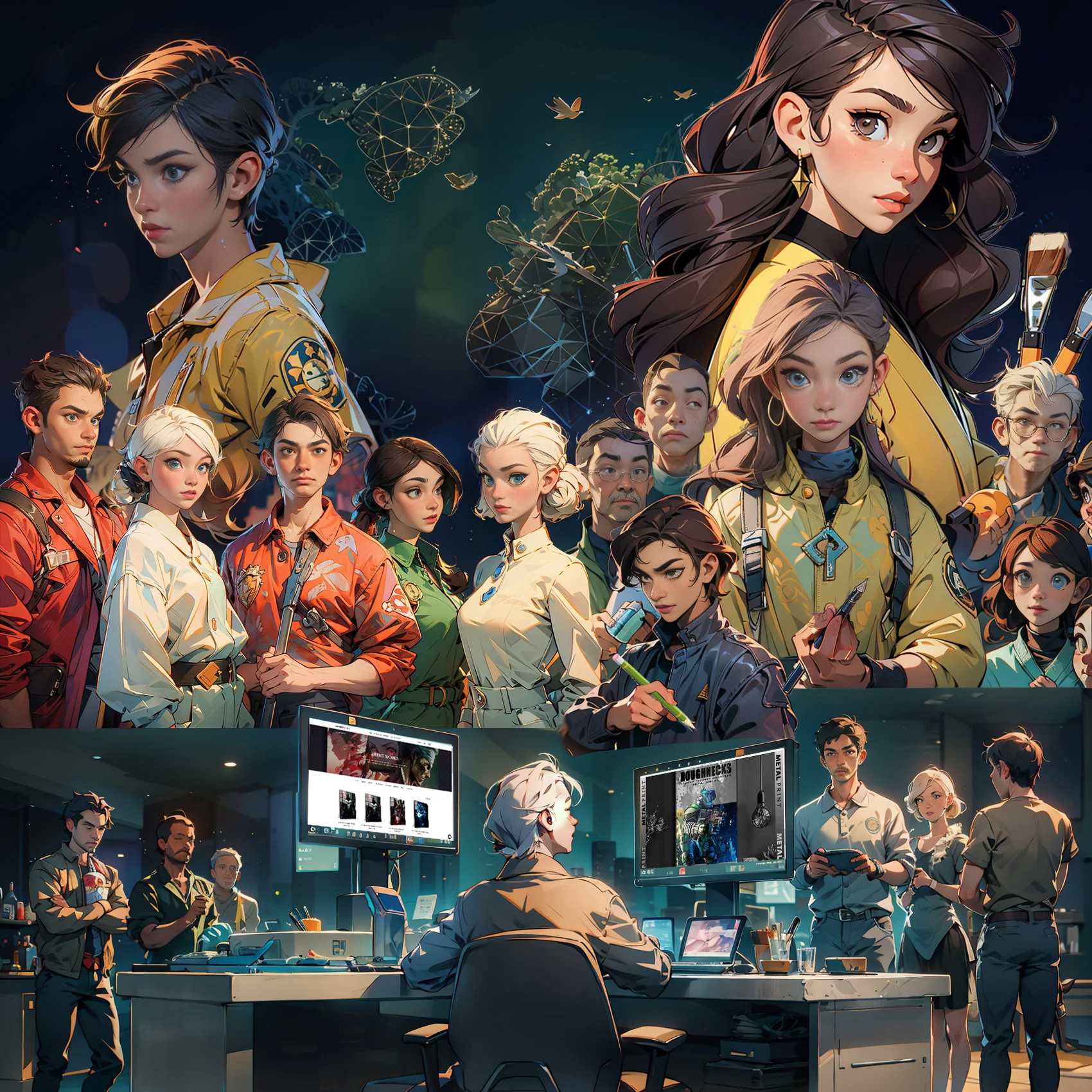 DetailSekelompok pelukis muda dari seluruh dunia bekerja keras untuk mengejar impian mereka. Kami mencetak produk seni mereka pada pakaian untuk menampilkannya dengan lebih baik.